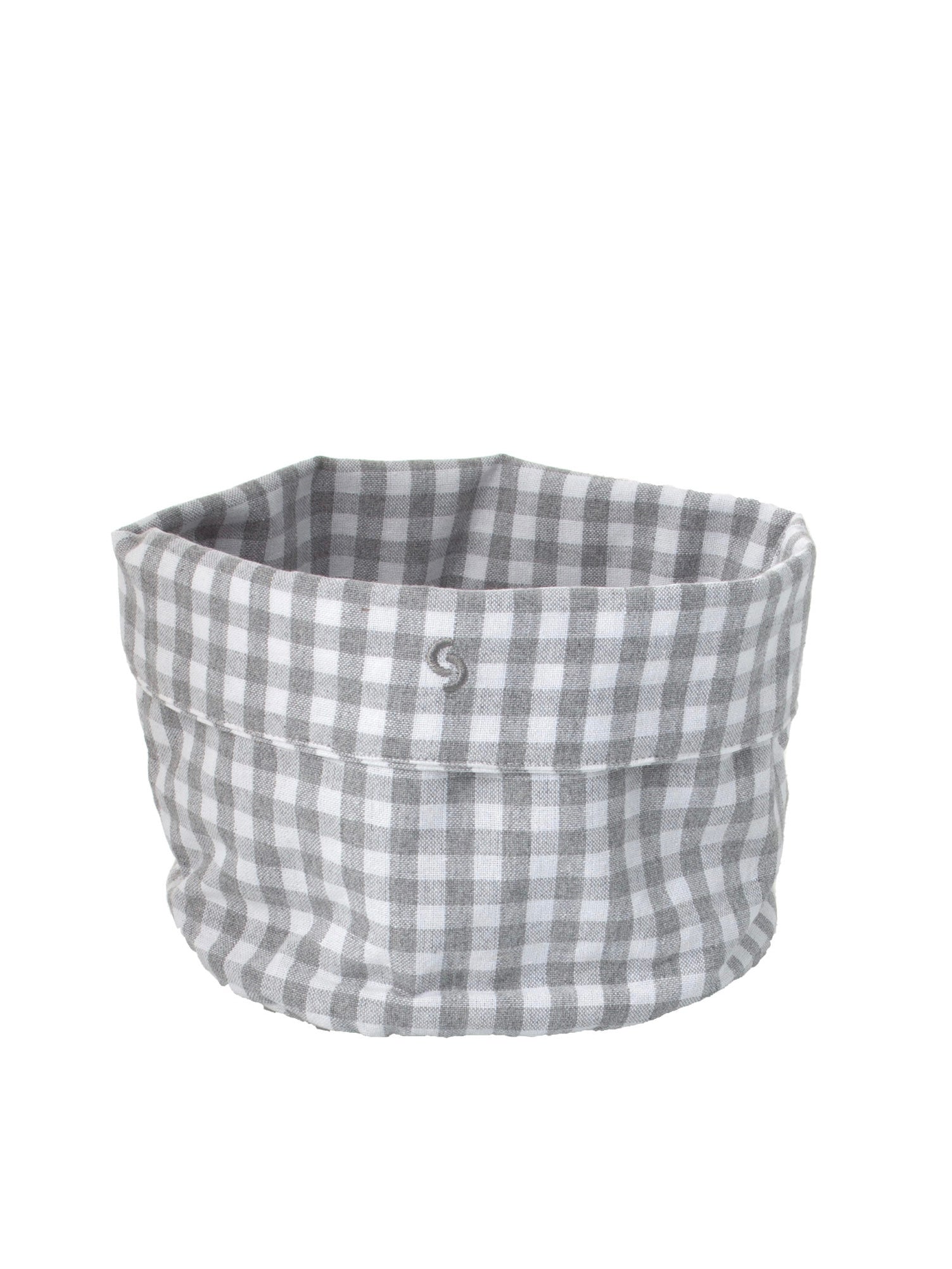 Dekorativer Brotkorb aus recycelter Baumwolle und Kunstfaser mit einem kleinem Karomuster. Leicht körnige Oberfläche.
