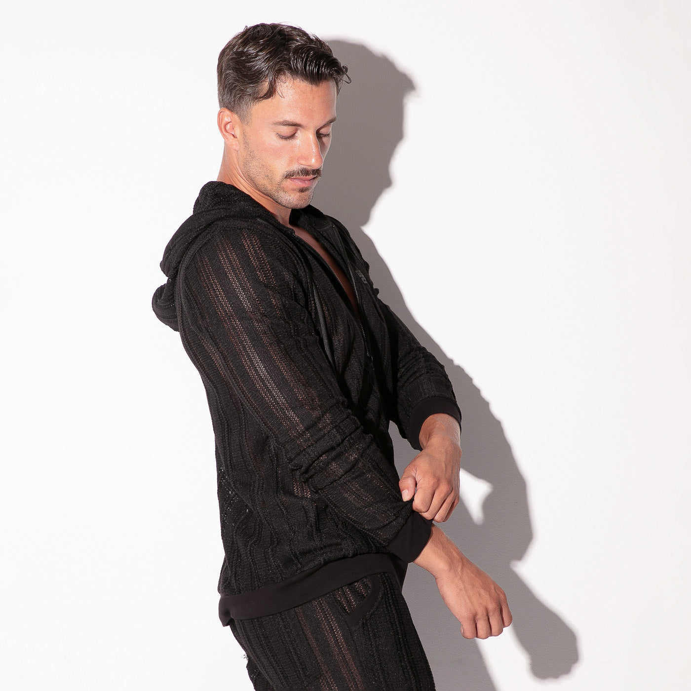 Schmal geschnittenes Hoody aus superweichem, gestreiftem Netzstoff.