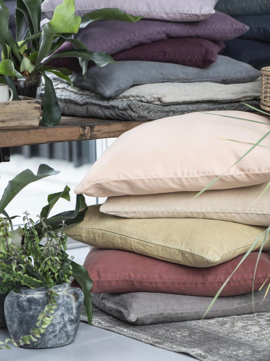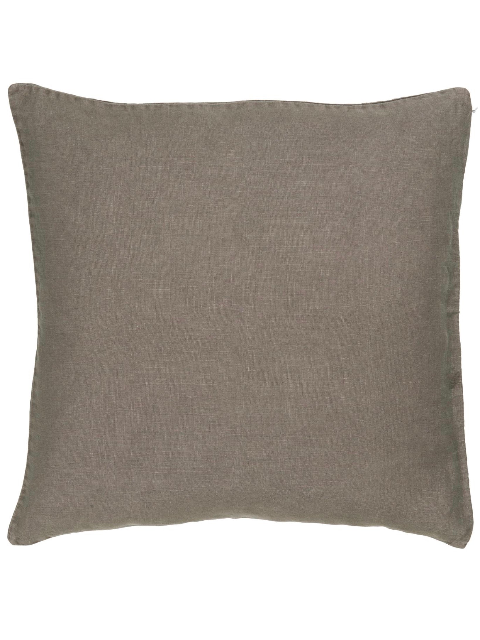 Der Bezug ist aus 100% Leinen gewebt, mit Reißverschluss zu schließen und wird mit Inlay Kissen geliefert.