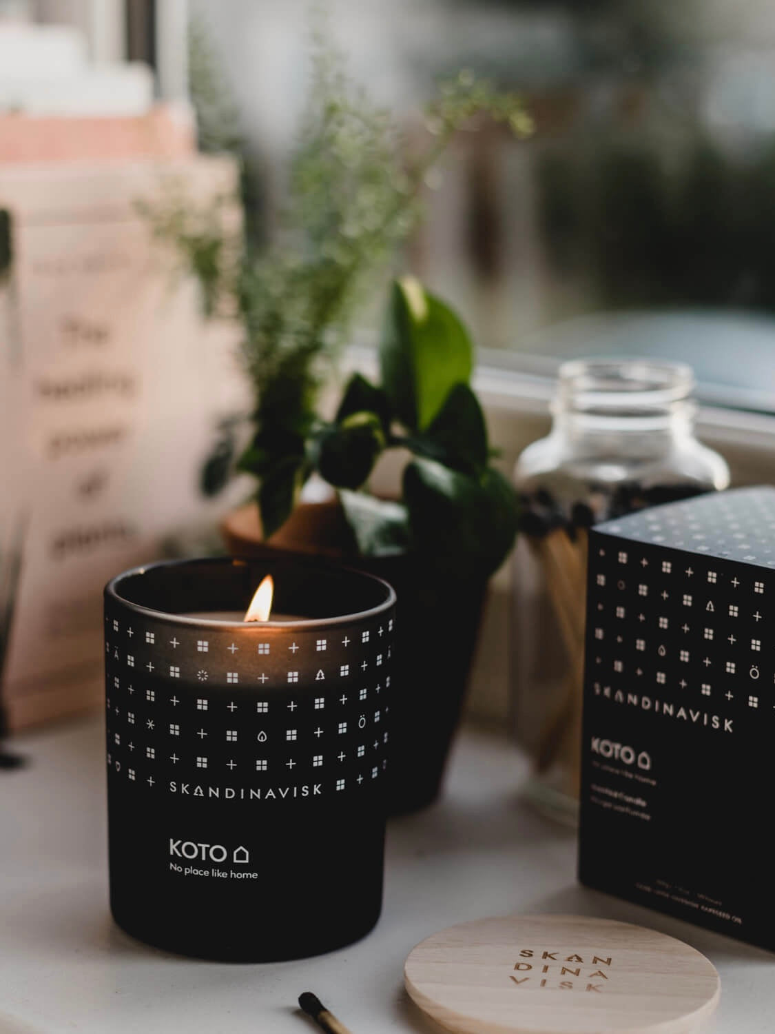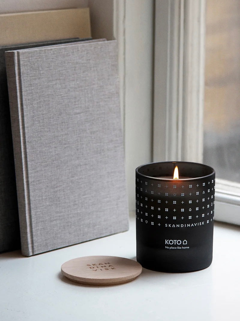 Duftkerze, hergestellt aus Wachs aus nachhaltiger, schwedischer Rapssaat mit Baumwolldocht und mit natürlichen Geruchsstoffen. Wohltuende Duftnoten von Amber, Leder, getrockneten Orangenschalen und Vanille im dekorativen, bemalten Glasgefäß mit Buchenholzdeckel. Dekorative Verpackung, ideal auch zum Verschenken.