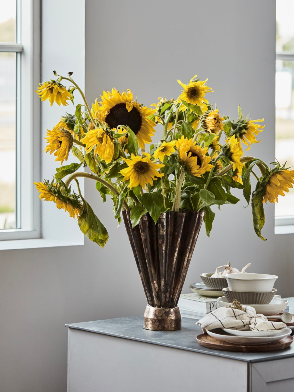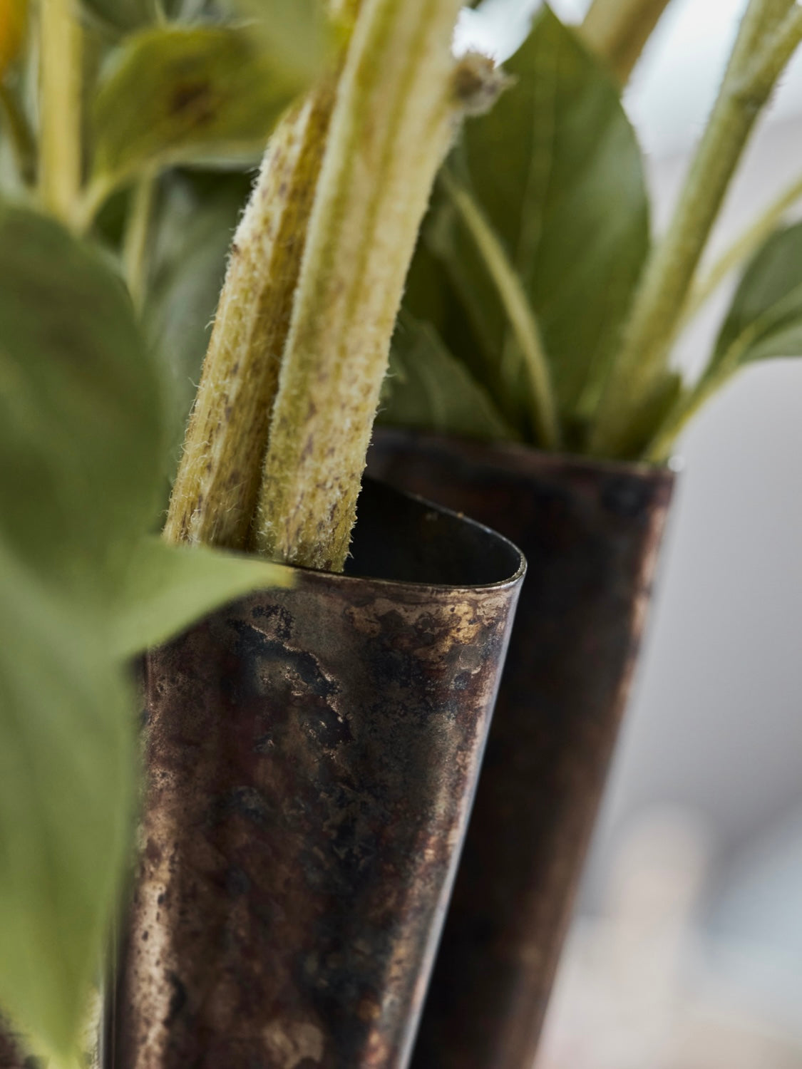 Dieser dekorative Vase aus Eisen beeindruckt mit einer antikbraunen Oberfläche, die einen rustikalen Charme verleiht. Die handgefertigte Vase zeigt eine wunderschön gewellte Form, die Blumenarrangements perfekt zur Geltung bringt und gleichzeitig als eigenständiges Kunstobjekt dient.