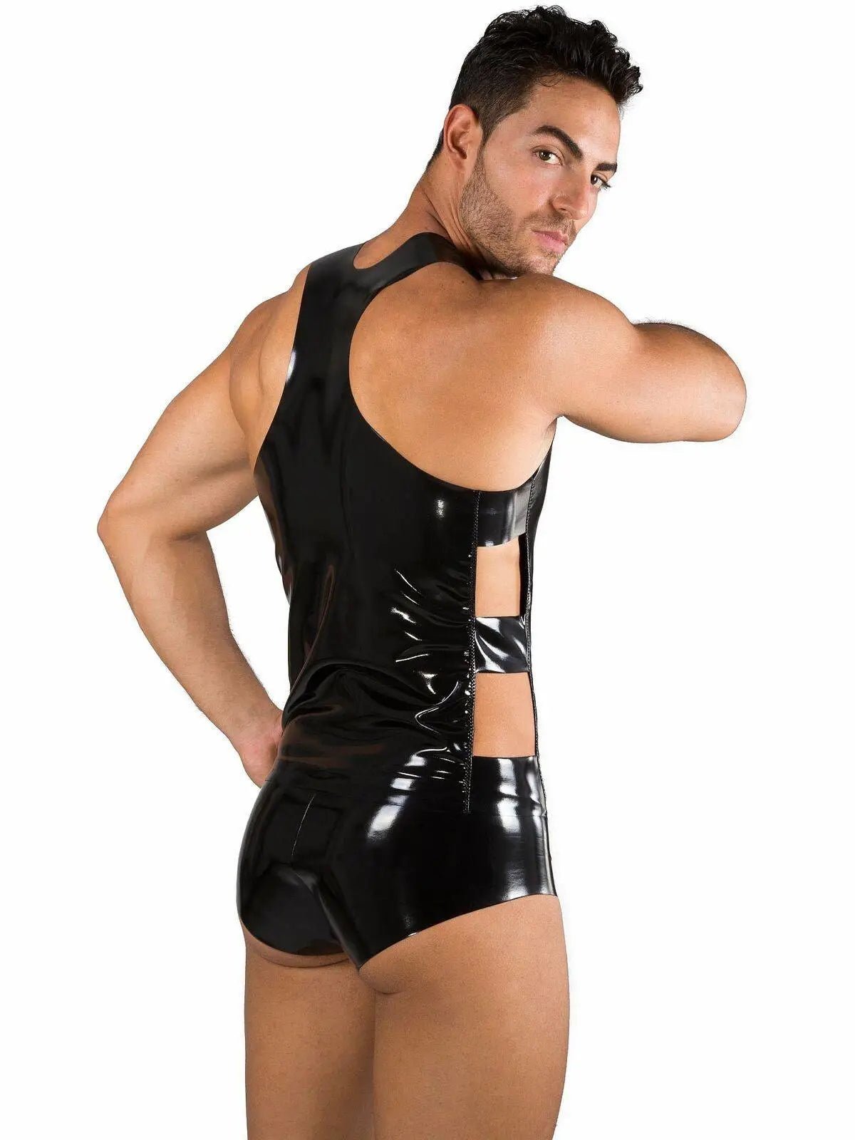 EROS VENEZIANI 7314 Herren Lack Leder Gummi Fetish Tank Top T-Shirt - noodosz