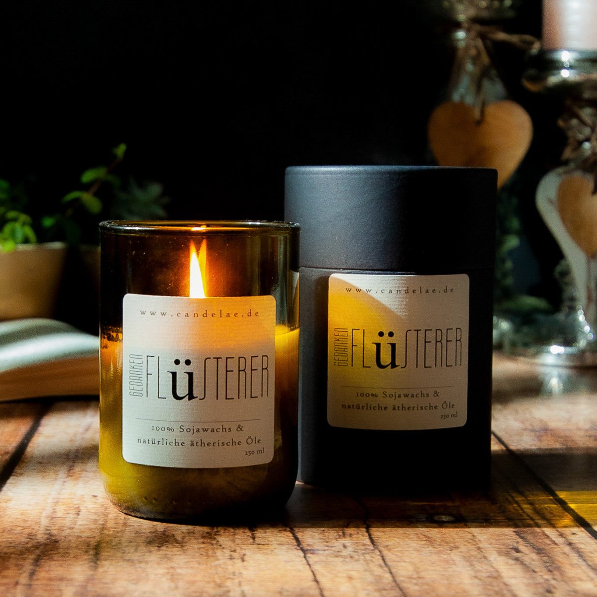 • Material: 100 % Sojawachs, ätherische Öle, recyceltes Glas (Upcycling)