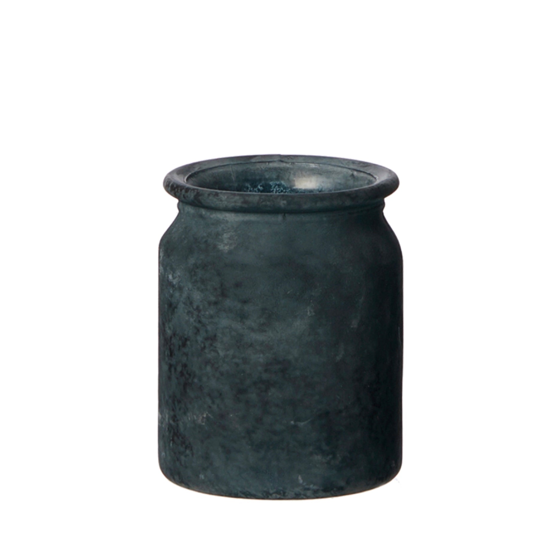 Schlichte, handgefertigte Vase aus recyceltem Glas. Ideal für kleine Blumensträuße oder einfach zur Dekoration geeignet.
