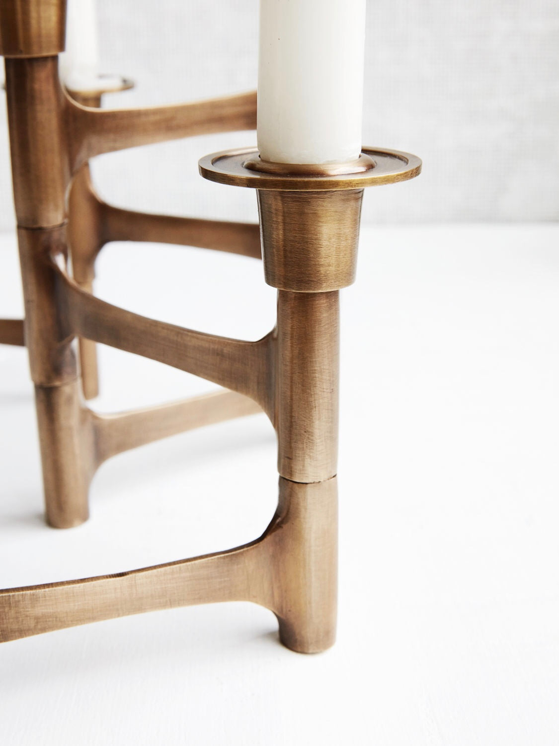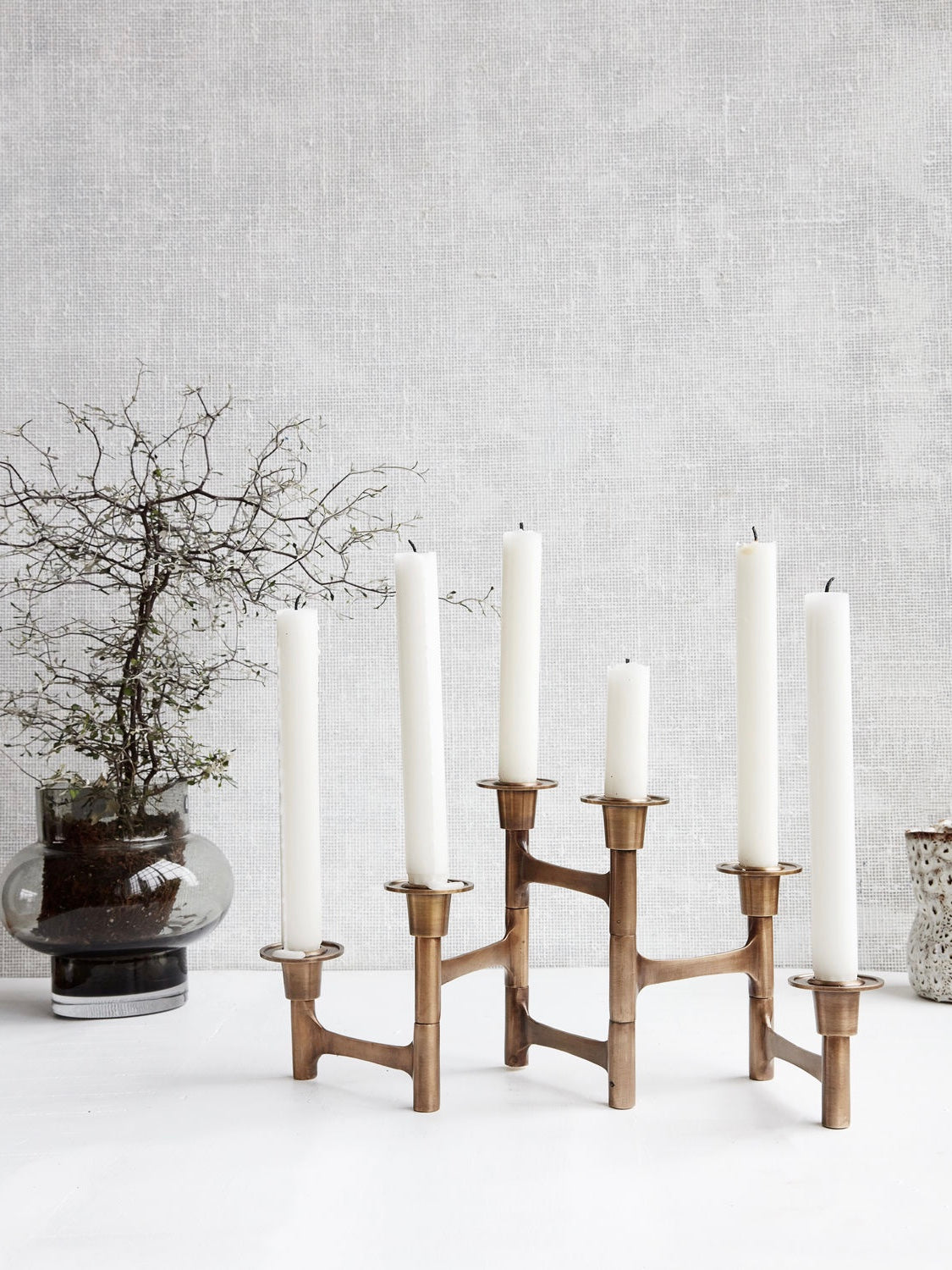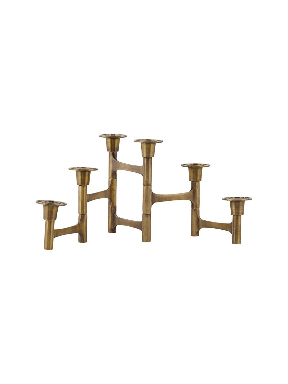 Schaffe mit einem hübschen Kerzenständer eine gemütliche Atmosphäre und jede Menge Persönlichkeit in deiner Einrichtung. Move von House Doctor ist ein schöner Kerzenständer mit einem skulpturalen Look und Platz für sechs Kerzen. Der Kerzenständer ist aus Messing gefertigt, das ihm einen modernen und geradlinigen Touch verleiht. Nutze den Kerzenständer als dekoratives Designobjekt auf dem Esstisch oder im Wohnzimmer - sowohl mit als auch ohne Kerzen. Du kannst die Scharniere bewegen und unterschiedliche Formen bilden. Lass deiner Kreativität freien Lauf.