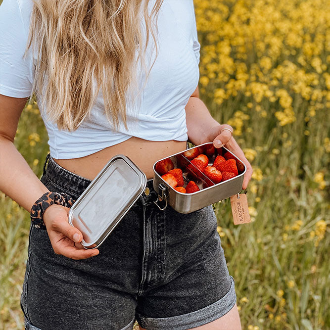 Auslaufsichere Edelstahl Brotdose mit flexibler Trennwand und 2 Fächern