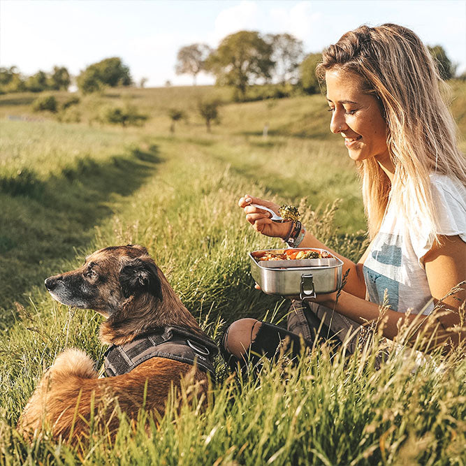 Auslaufsichere XL Edelstahl Brotdose mit flexibler Trennwand und 2 Fächern