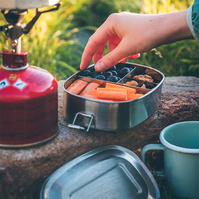 Edelstahl Brotdose mit fester Trennwand und 3 Fächern
