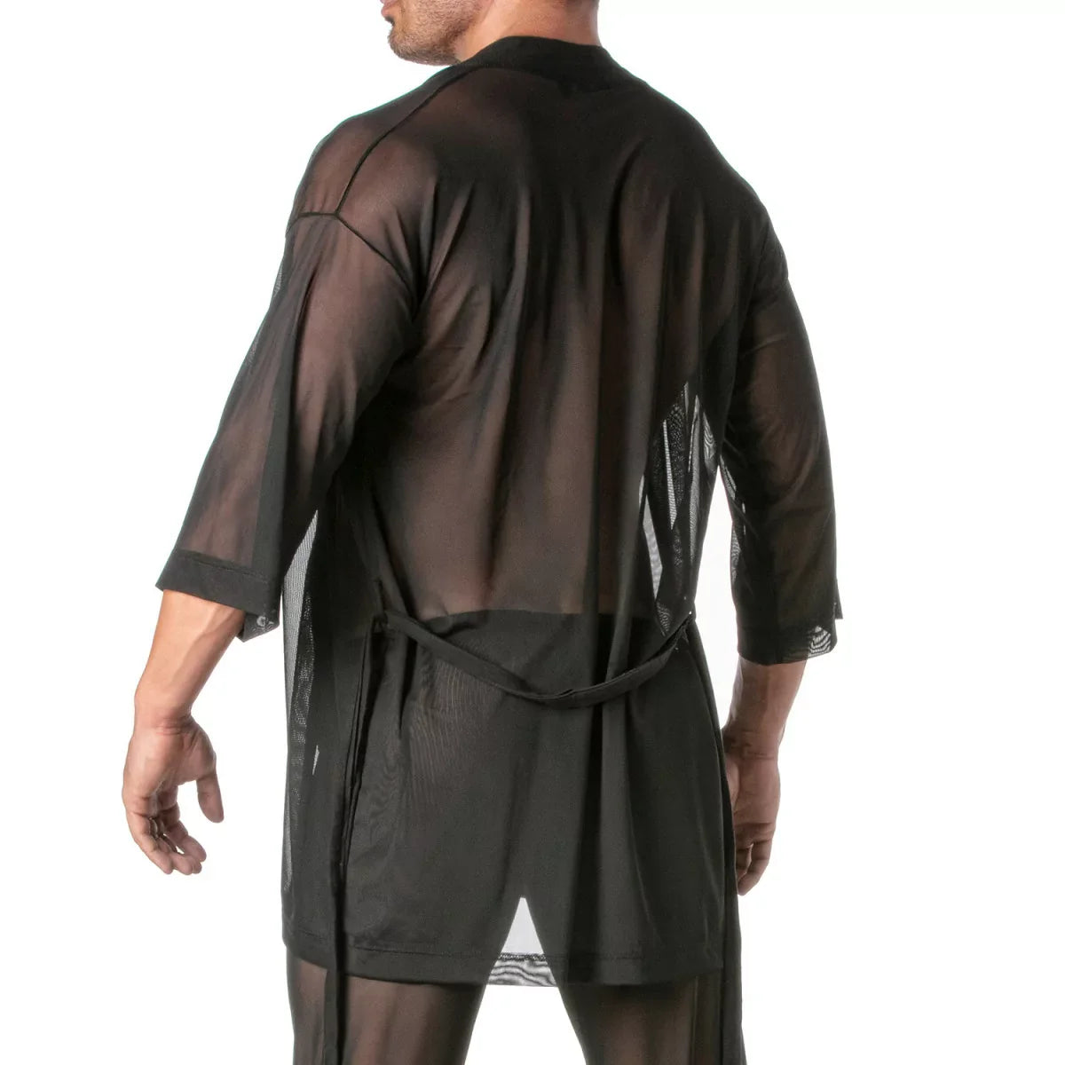Ob als Bathrobe oder als lässiges Übergewand – das Mesh Kimono Vest ist ein unverzichtbares Teil für alle, die Wert auf schlichten, aber raffinierten Stil legen.
