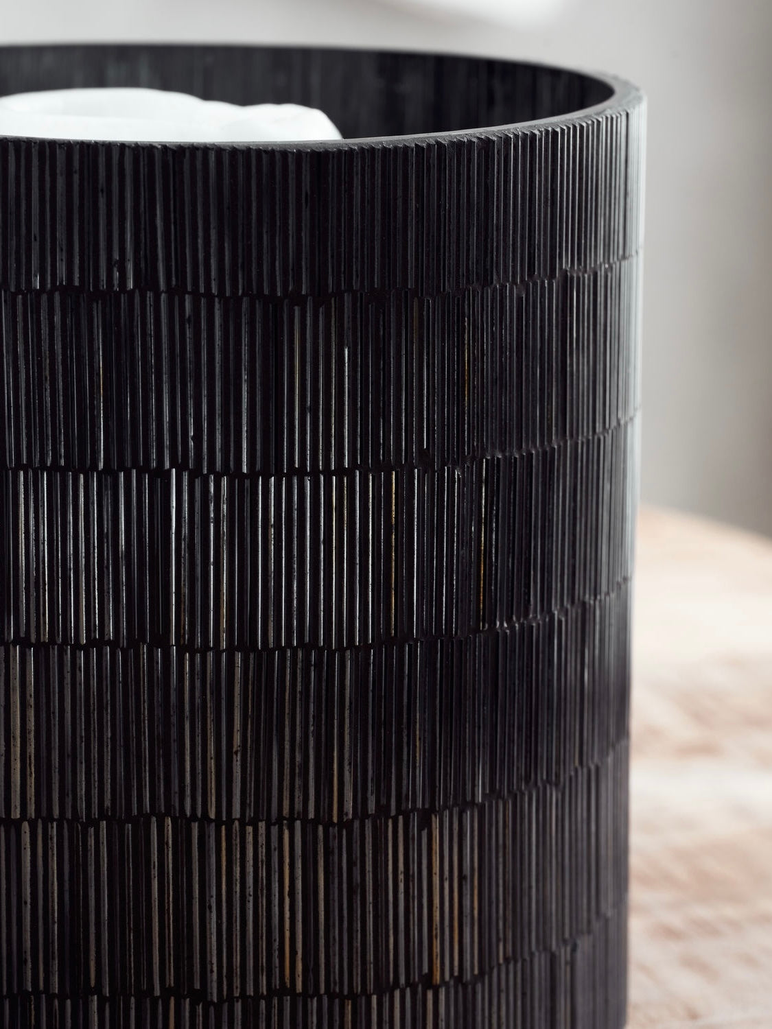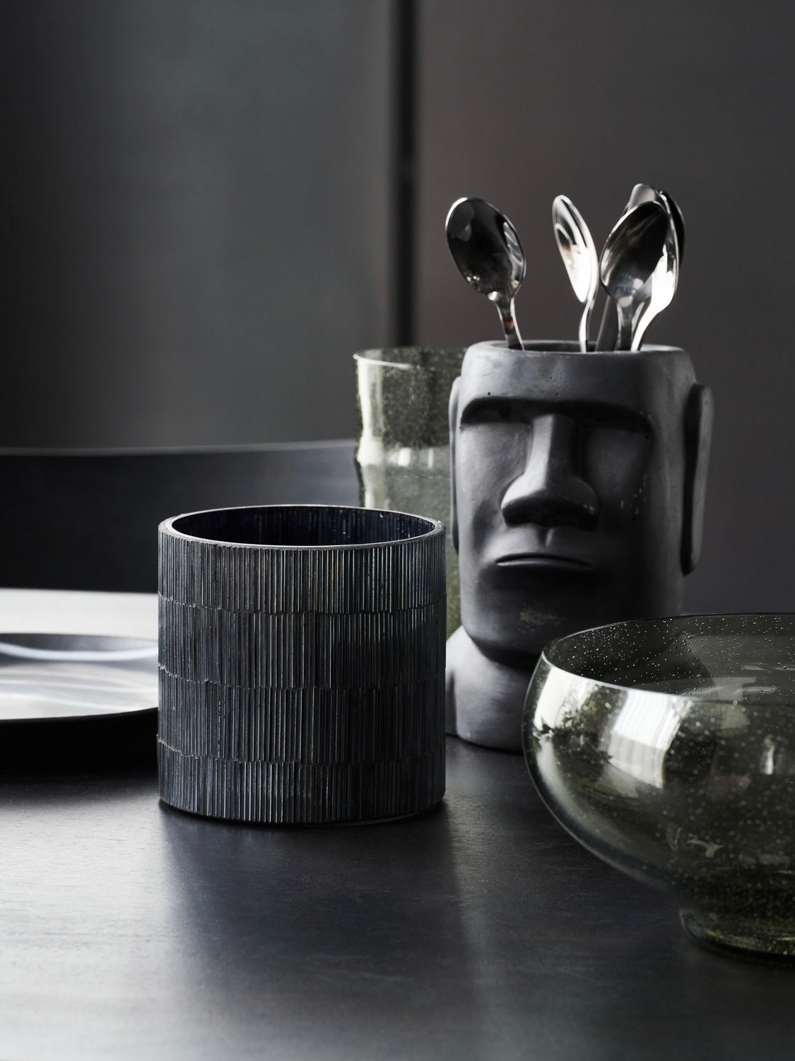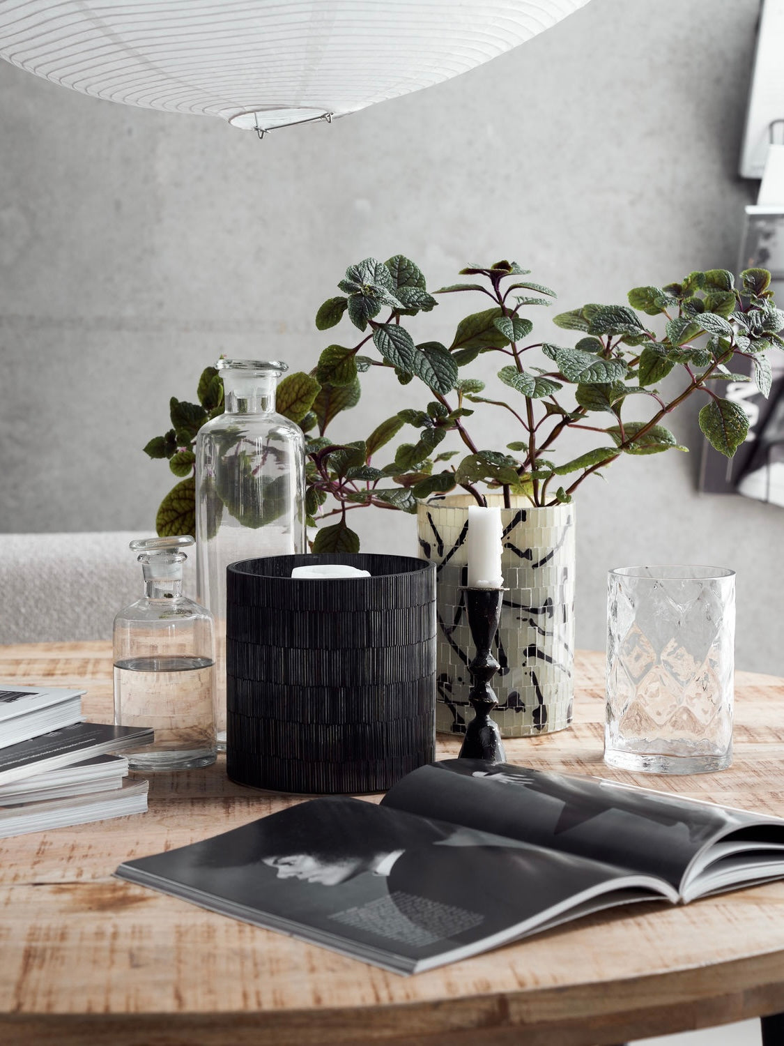 Mit diesem schwarzen Teelichthalter verleihst du deinem Couchtisch sofort einen Hauch von Eleganz. Der Gara-Teelichthalter von House Doctor ist handgefertigt, hat eine Mosaikoptik und bildet so einen Kontrast zu glatten Oberflächen und anderen Materialien. Das schöne Design lässt sich wunderbar zwischen Kerzenhaltern mit glatten Oberflächen auf dem Tisch oder Regal einfügen. Unterstreiche den besonderen Ausdruck des Mosaiks, indem du den Teelichthalter schön arrangierst. Größe L eignet sich sogar für große Teelichte oder Stumpenkerzen.
